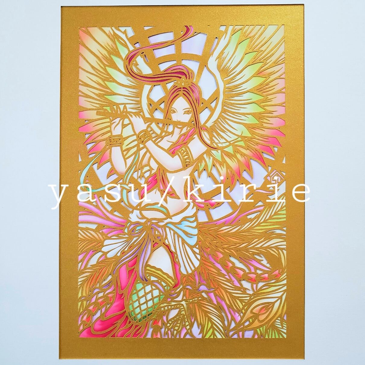 [迦陵頻伽(カリョウビンガ)]をモチーフにしたオリジナルの切り絵作品です。